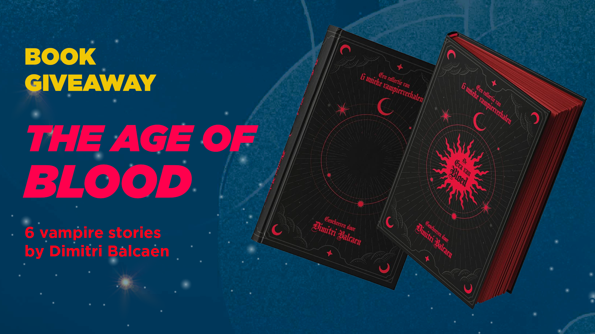 Dimitri Balcaen and FACTS are giving away two copies of The Age of Blood (De Era van Bloed), a bundle of 6 unique vampire stories wrapped in a unique heat-sensitive cover. There is one Dutch copy and one English copy